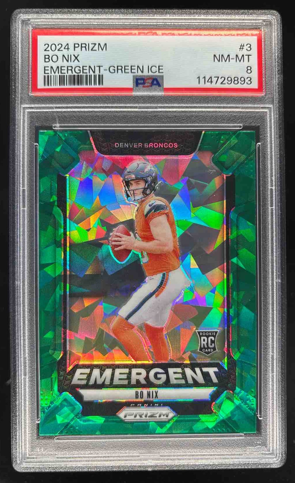 2024 Panini Prizm Emergent Green Ice Prizm #3 Bo Nix RC PSA 8