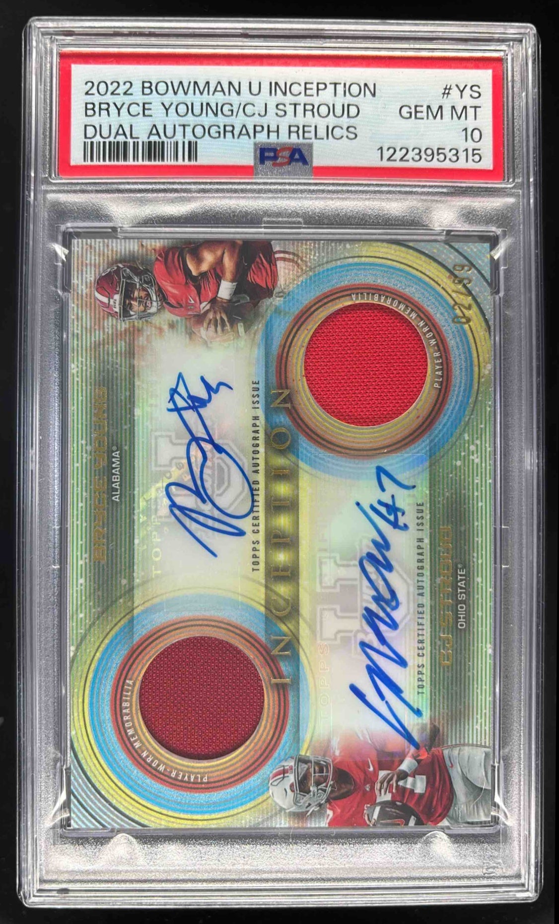 2022 Bowman University Inception Dual Auto Relics Bryce Young Stroud /99 PSA 10