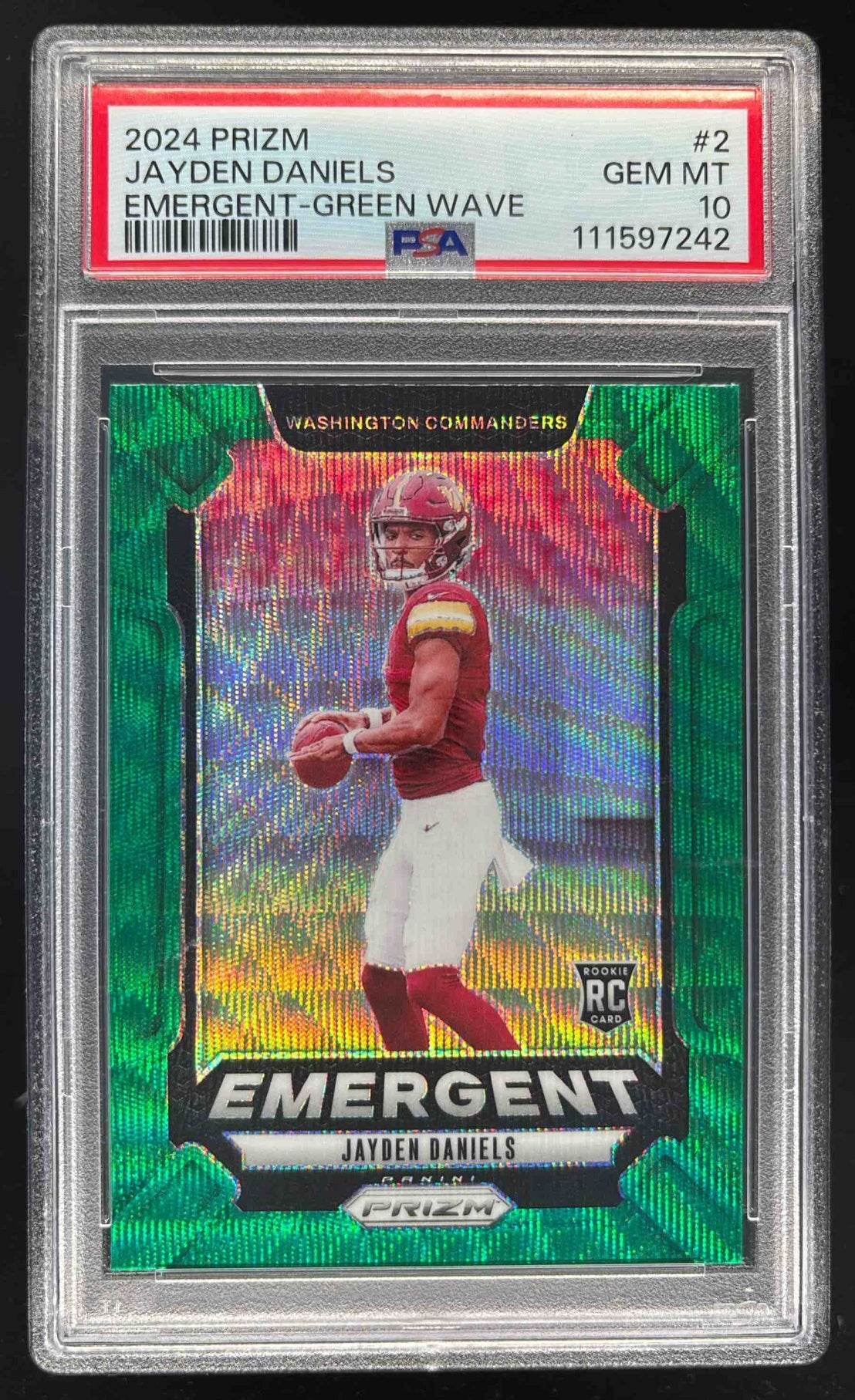 2024 Panini Prizm Emergent Green Wave Prizm #2 Jayden Daniels RC PSA 10