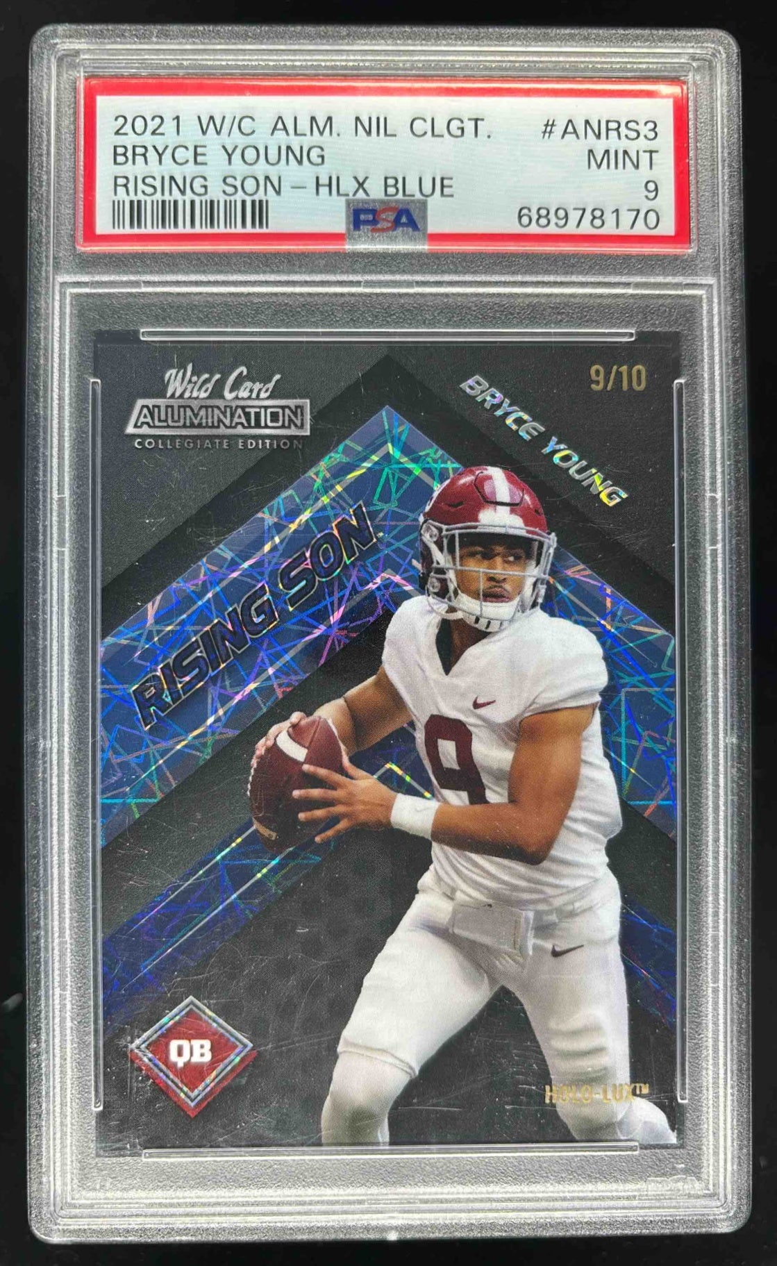 2021 Wild Card NIL Rising Son Blue Holo Lux Lazer Bryce Young /10 PSA 9