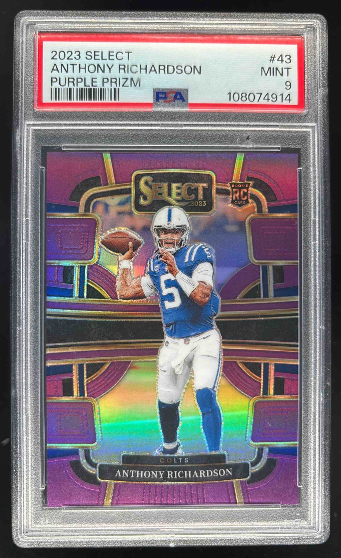 2023 Panini Select Purple Prizms #43 Anthony Richardson RC Concourse /75 PSA 9