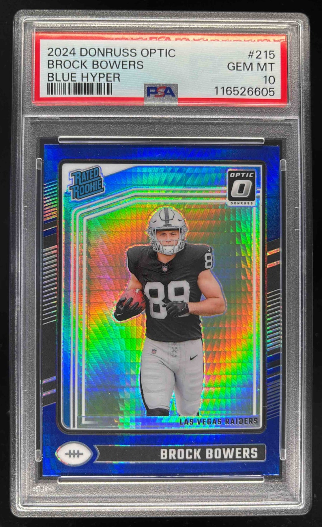2024 Panini Donruss Optic Blue Hyper #215 Brock Bowers Rated Rookie PSA 10