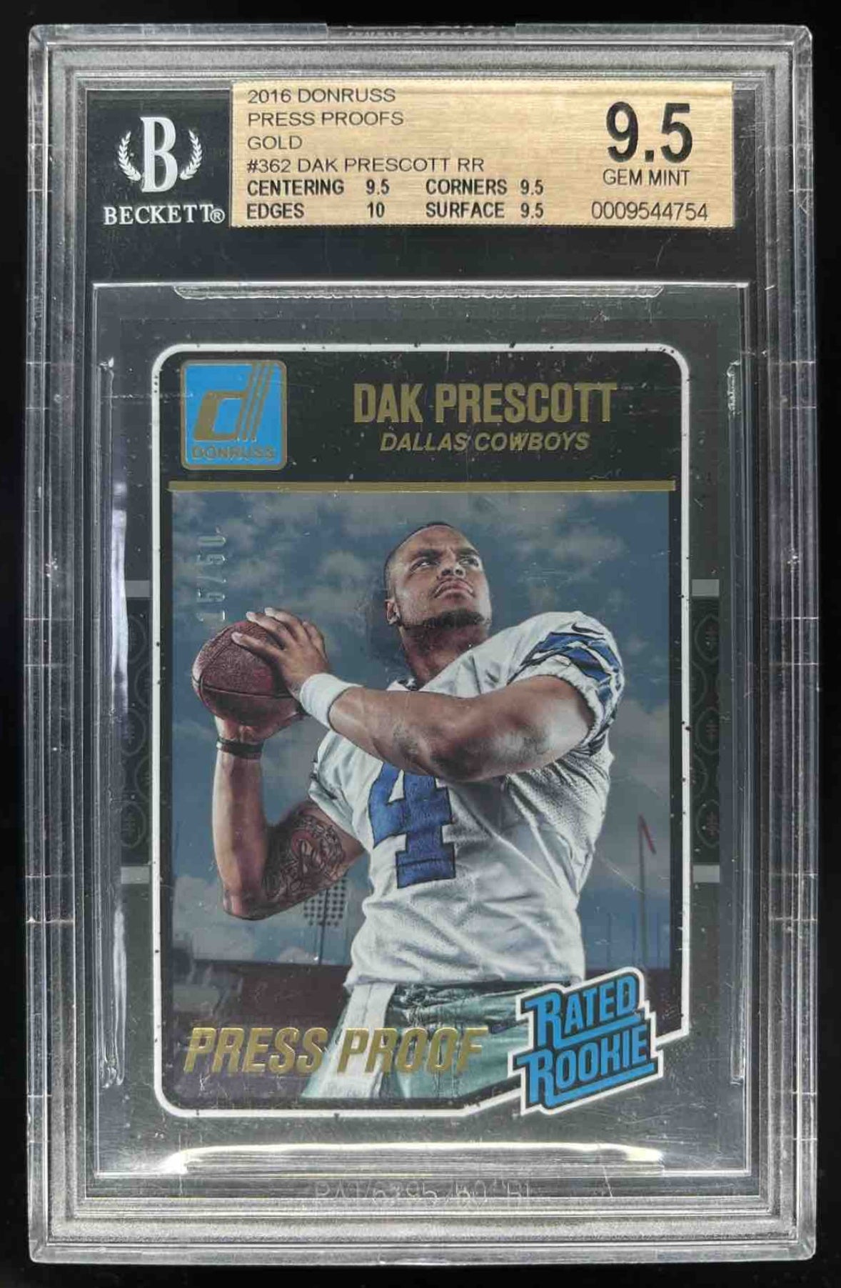 2016 Panini Donruss Press Proofs Gold #362 Dak Prescott RC /50 BGS 9.5