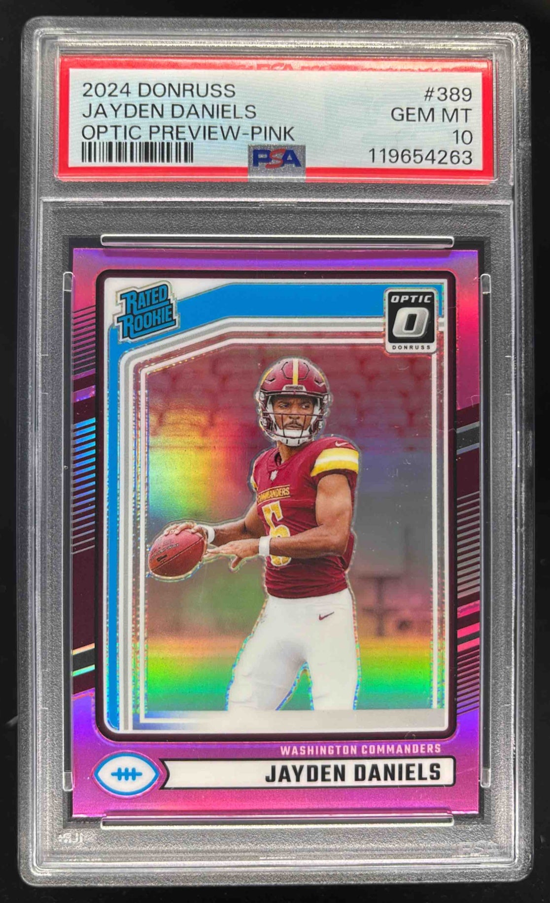 2024 Donruss Optic Rated Rookies Preview Pink Jayden Daniels RC Rookie PSA 10