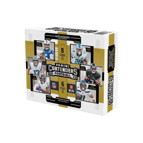 •  The juggernaut that is Contenders Football returns for the 2023 season, boasting its trademark arsenal of collection-making content headlined by Rookie Ticket autographs, a spectacular array of parallels, must-have inserts and so much more.