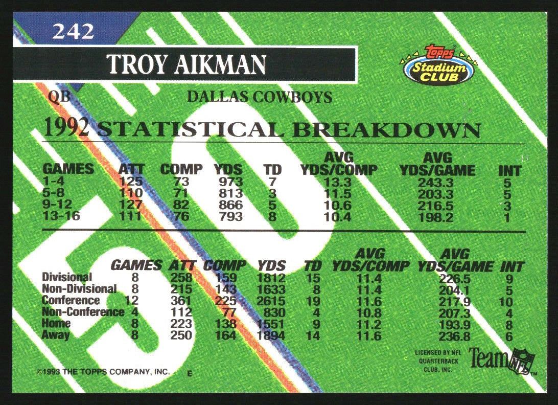 1993 Stadium Club First Day #242 Troy Aikman Members Choice