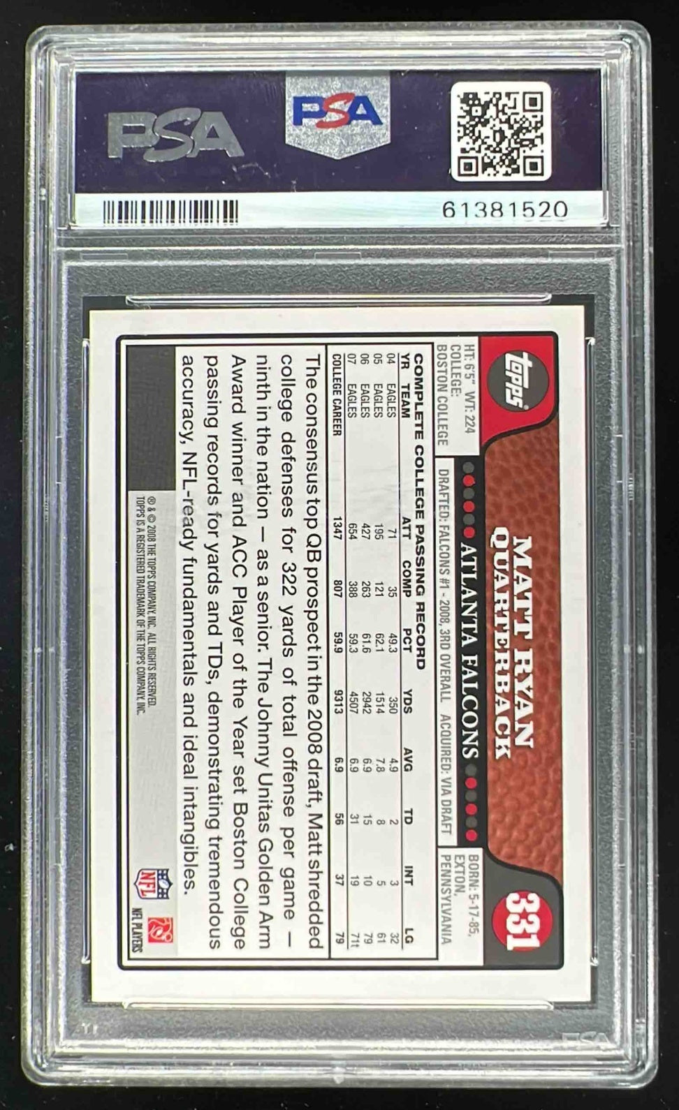 2008 Topps #331 Matt Ryan RC PSA 8