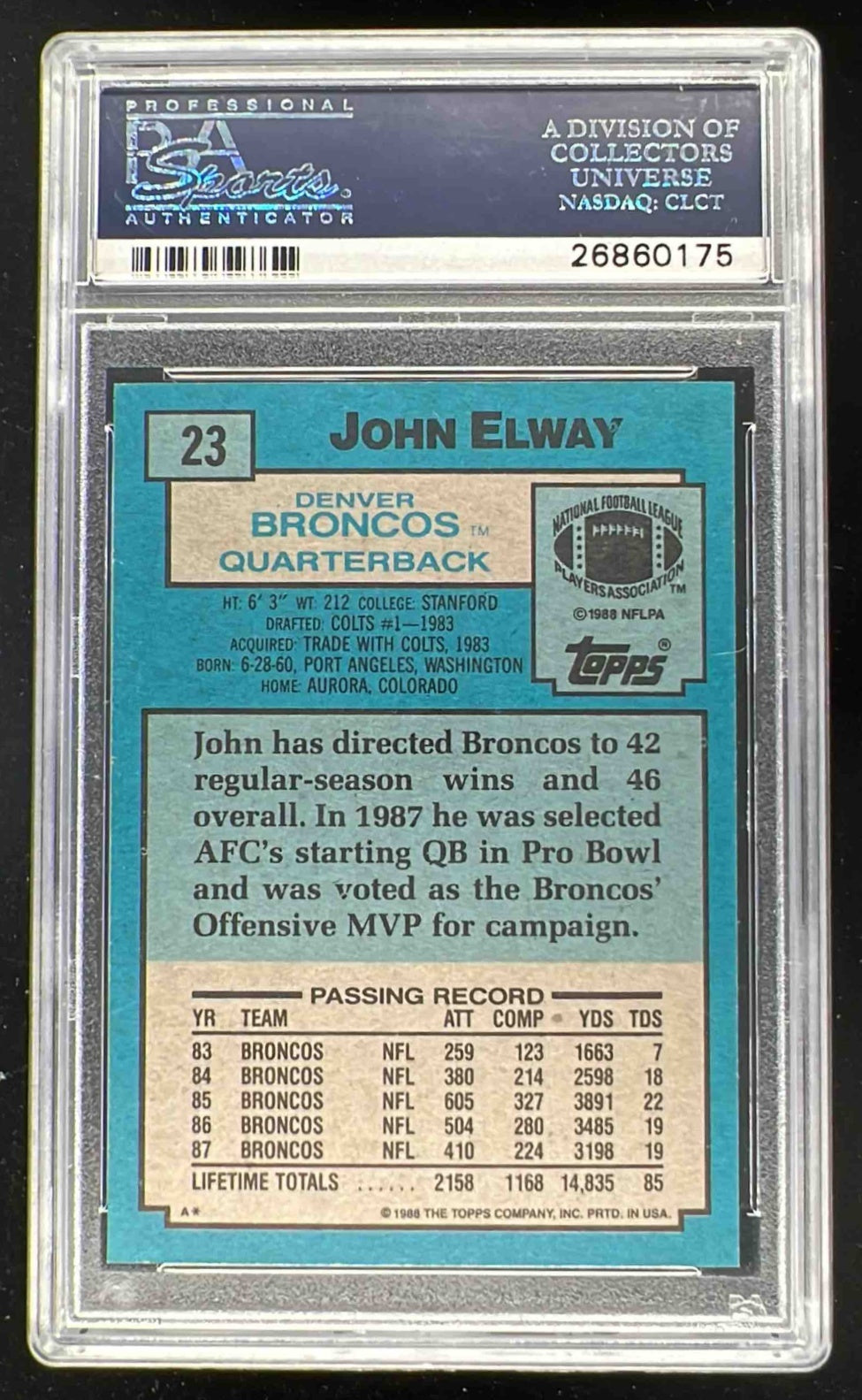 1988 Topps #23 John Elway PSA 10