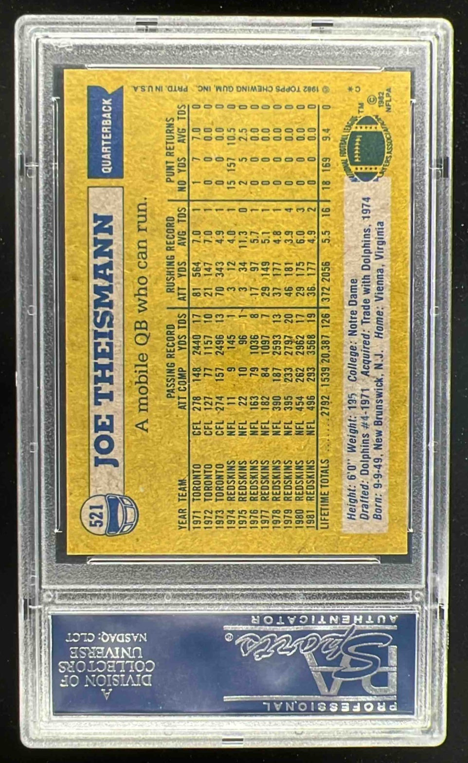 1982 Topps #521 Joe Theismann PSA 10