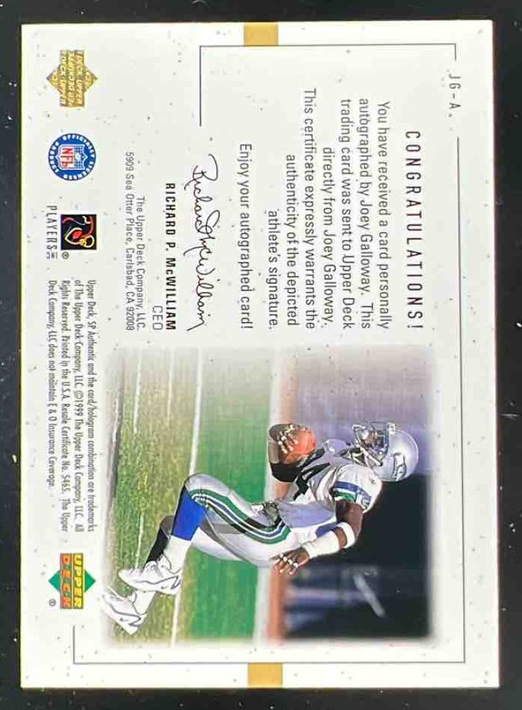 1999 SP Authentic Player's Ink Green #JG-A Joey Galloway Auto