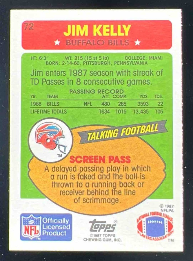 1987 Topps American #72 Jim Kelly RC