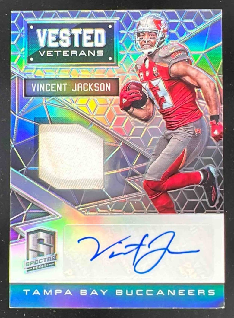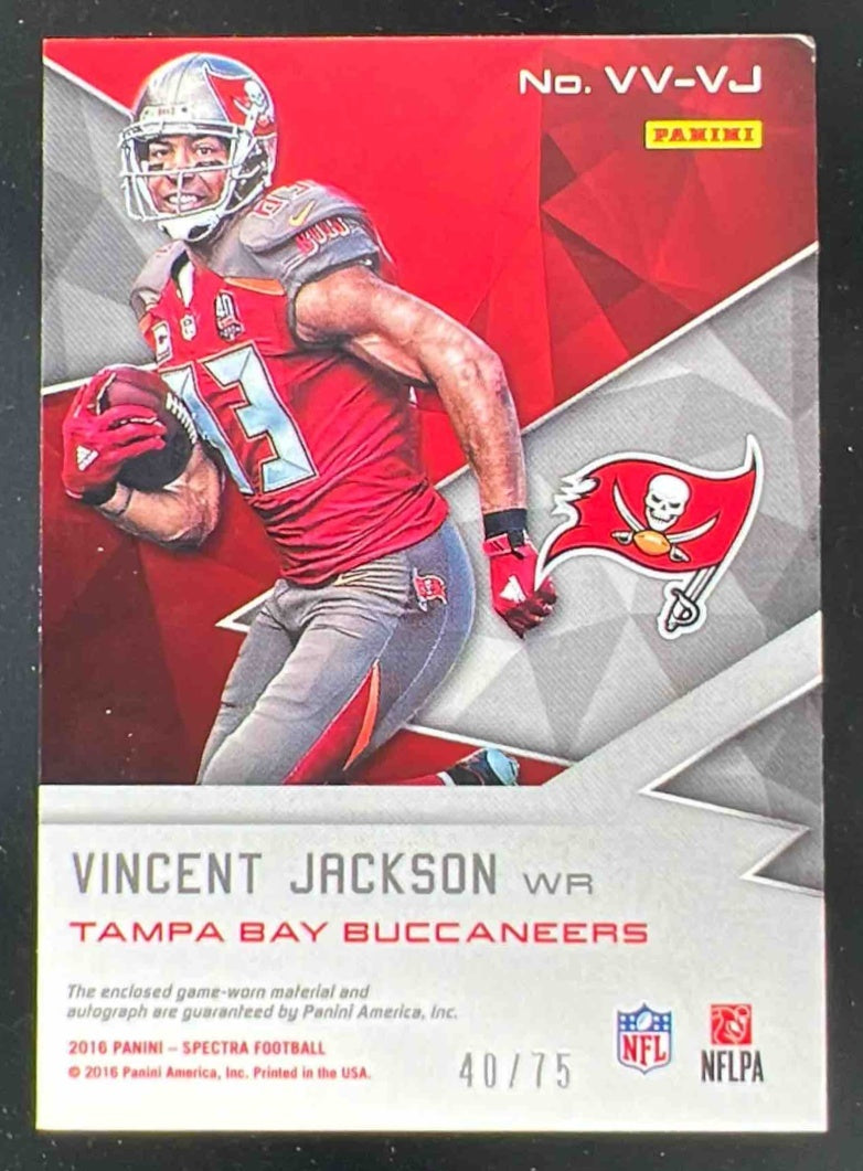 2016 Panini Spectra Vested Veterans #VV-VJ Vincent Jackson Auto /75