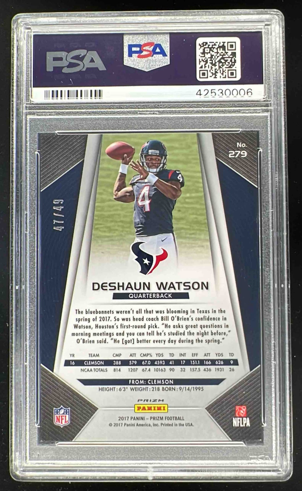 2017 Panini Prizm Prizm Red Power #279 Deshaun Watson RC /49 PSA 9
