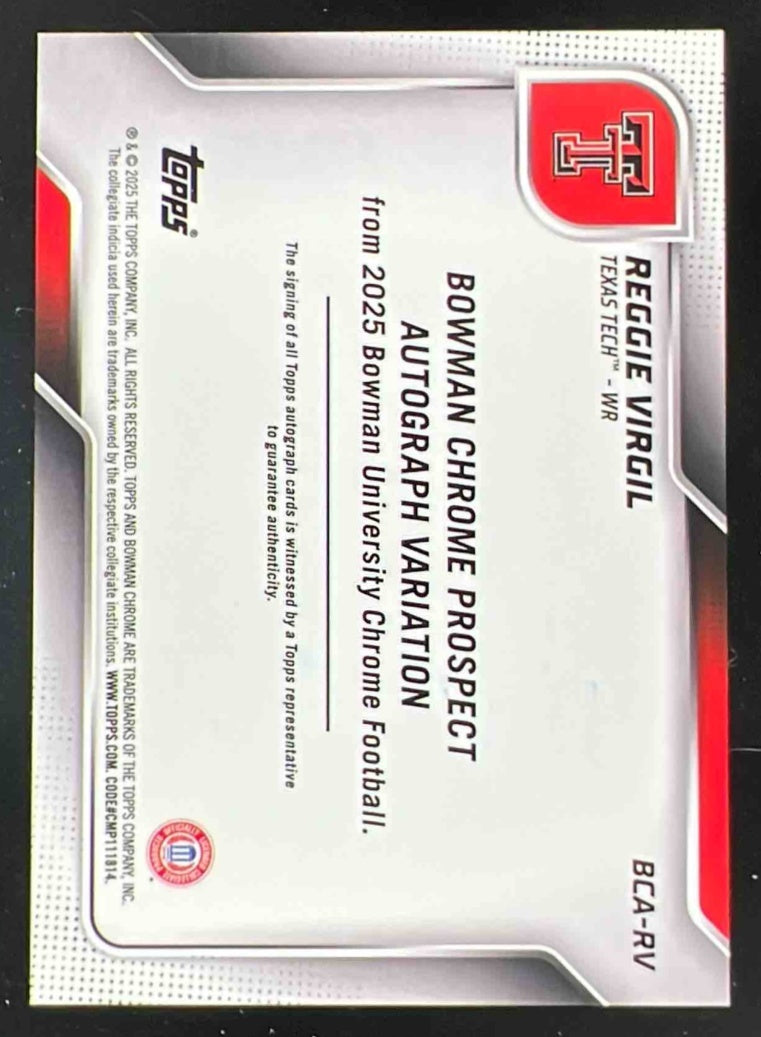 2025 Bowman Chrome University Purple Refractor #BCA-RV Reggie Virgil Auto /75