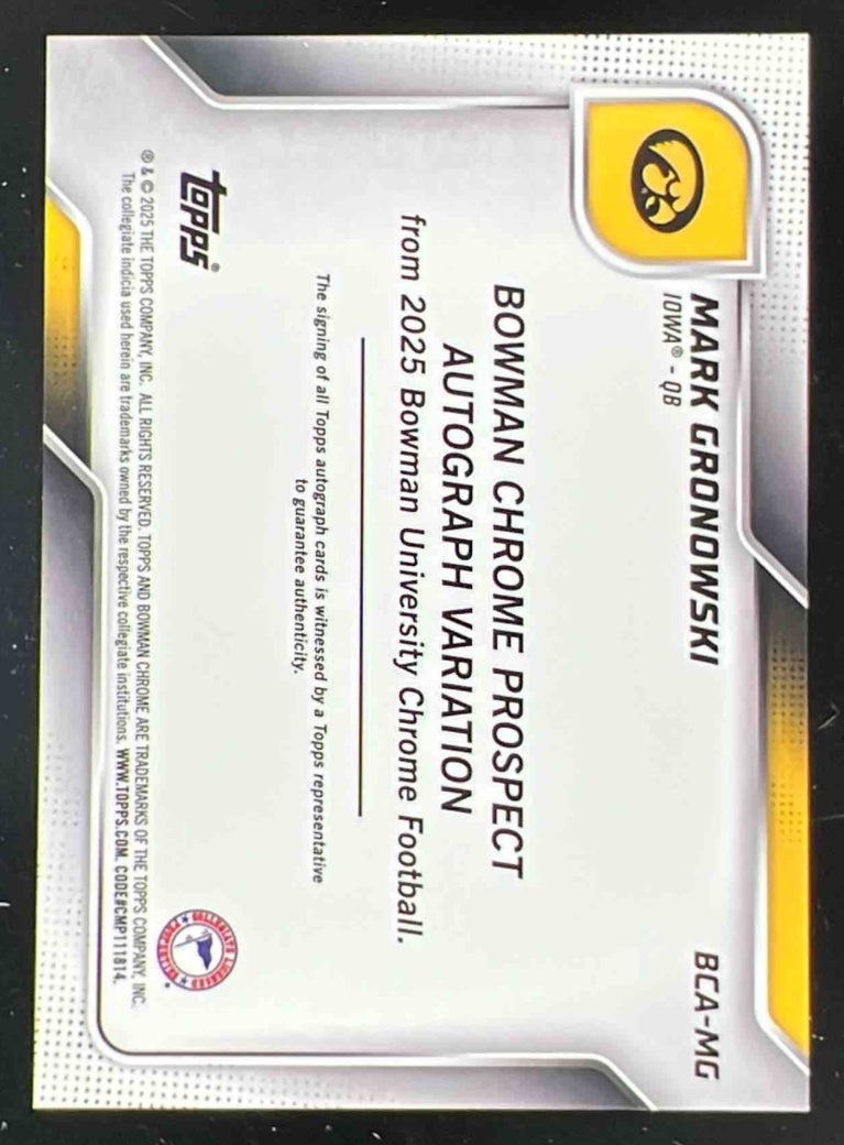 2025 Bowman Chrome University Prospect Autograph #BCA-MG Mark Gronowski Auto