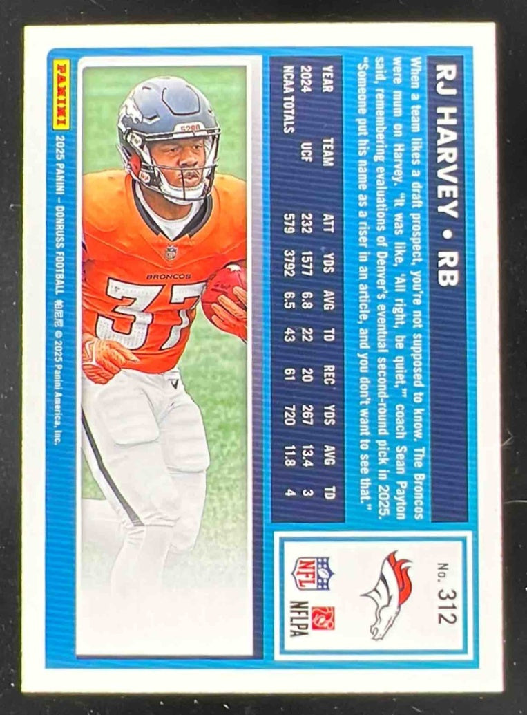 2025 Panini Donruss Optic Rated Rookies Preview Holo #312 RJ Harvey RC