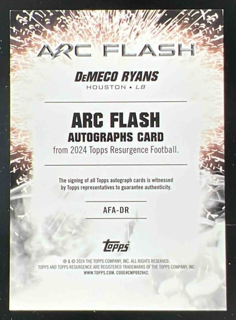 2024 Topps Resurgence Arc Flash Orange Power Surge #AFA-DR DeMeco Ryans Auto /25