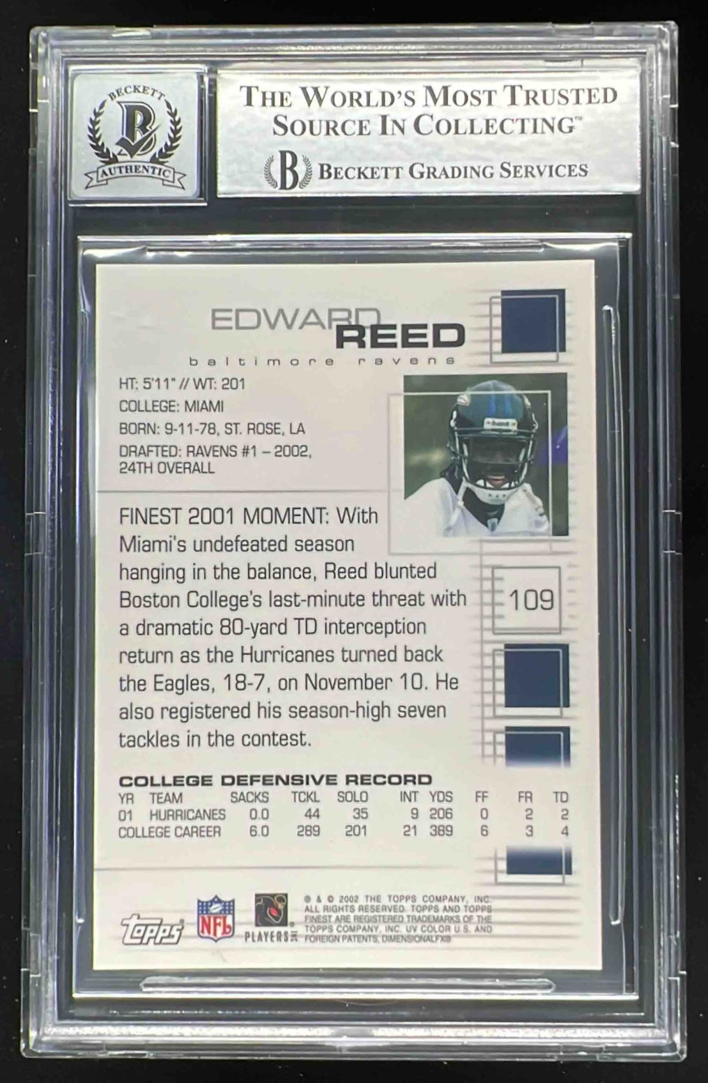 2002 Topps Finest #109 Ed Reed RC Autograph Auto BGS Authentic