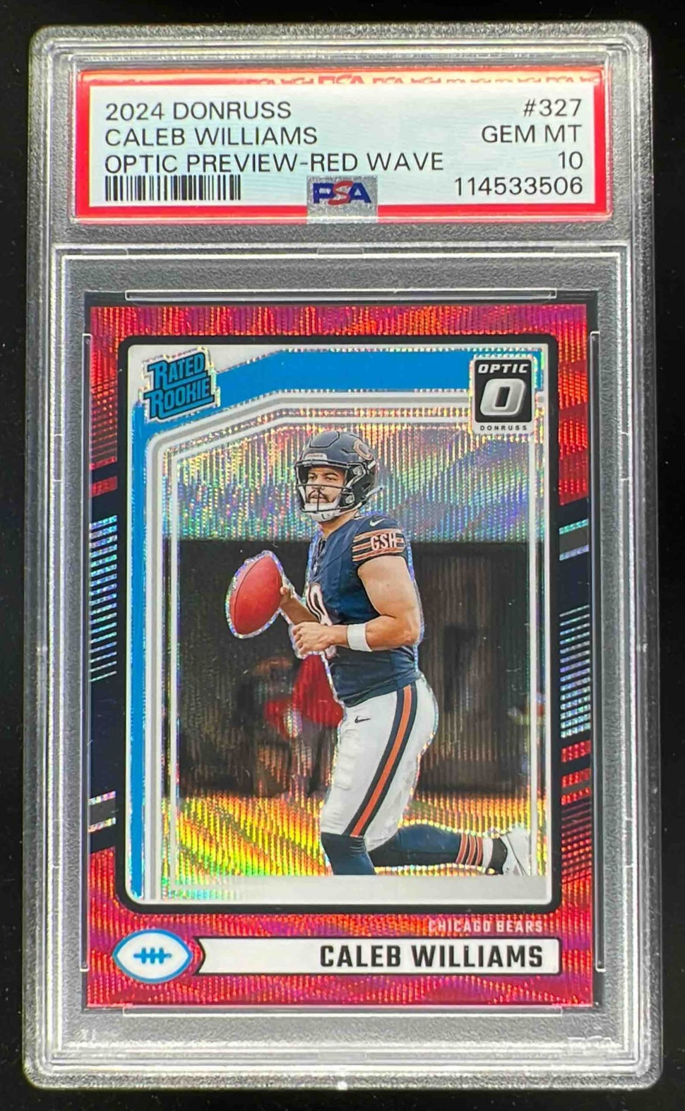 2024 Donruss Optic Rookies Preview Red Wave #327 Caleb Williams RC Rookie PSA 10