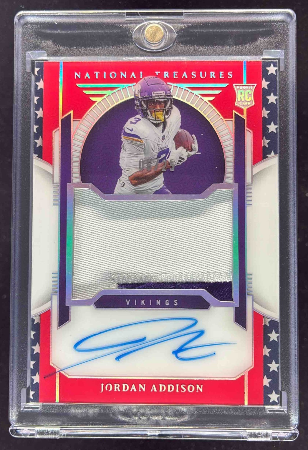 2023 National Treasure Rookie Patch Stars Stripes Silver Jordan Addison Auto /25