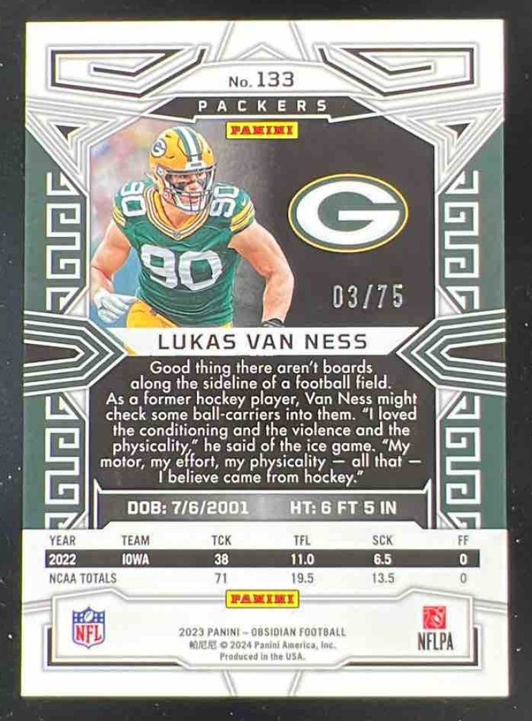 2023 Panini Obsidian Electric Etch Purple #133 Lukas Van Ness RC /75