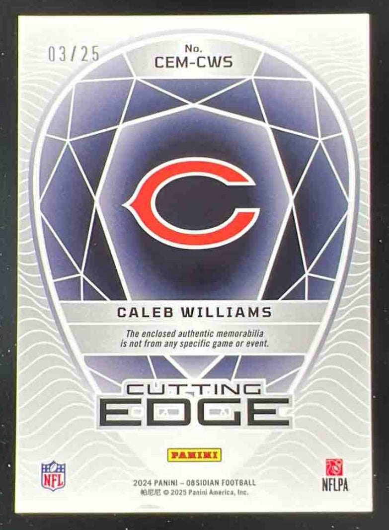 2024 Panini Obsidian Cutting Edge Materials Blue #CEM-CWS Caleb Williams RC /25