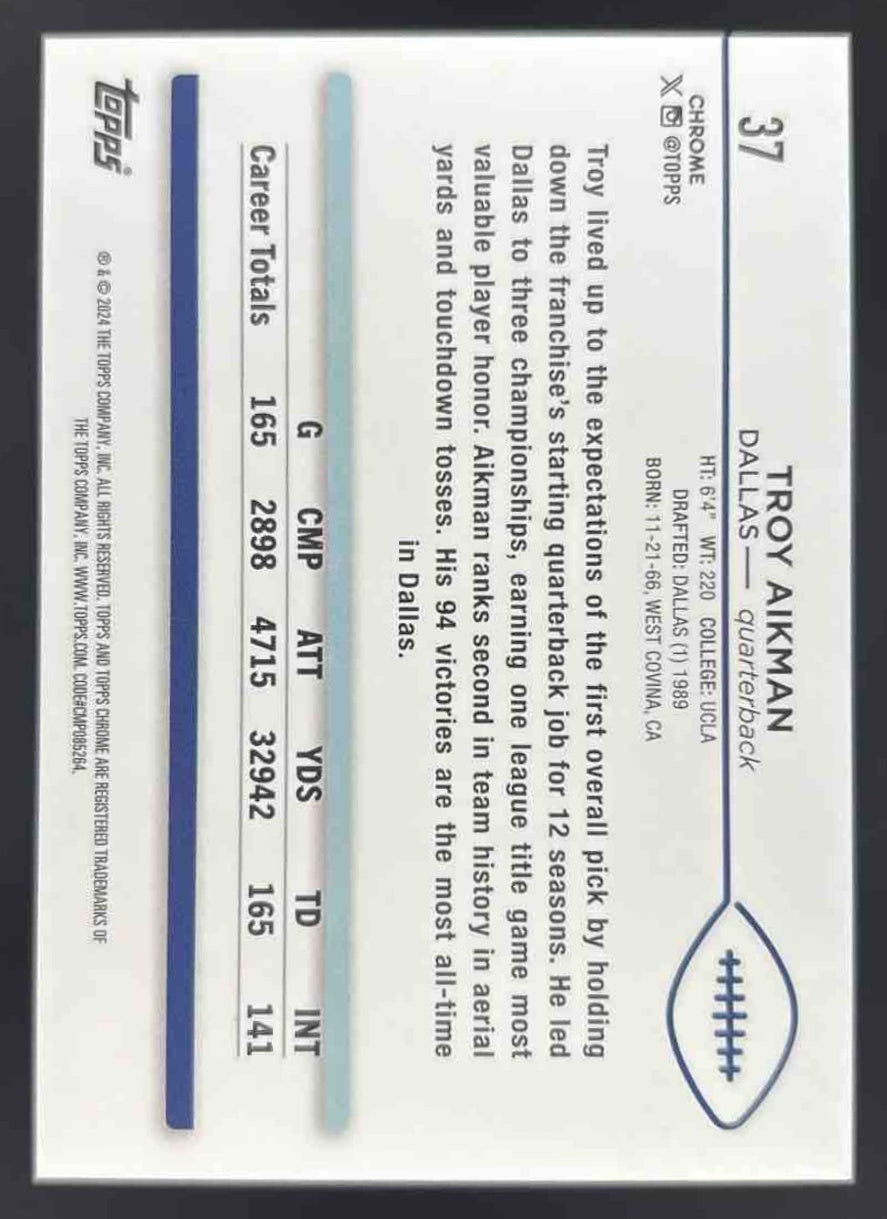 2024 Topps Chrome Gold Refractor #37 Troy Aikman /50