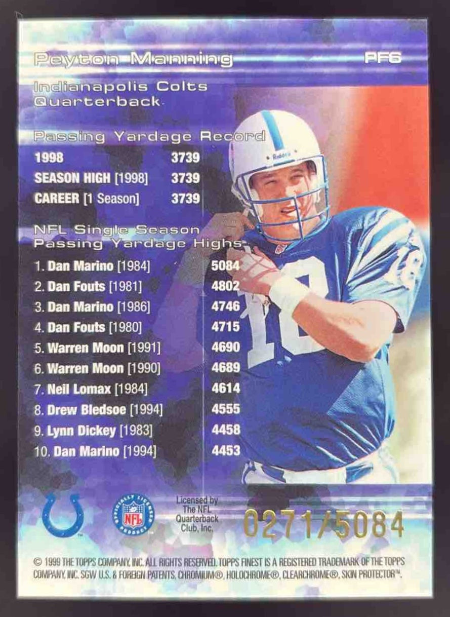 1999 Topps Finest Prominent Figures #PF6 Peyton Manning /5084