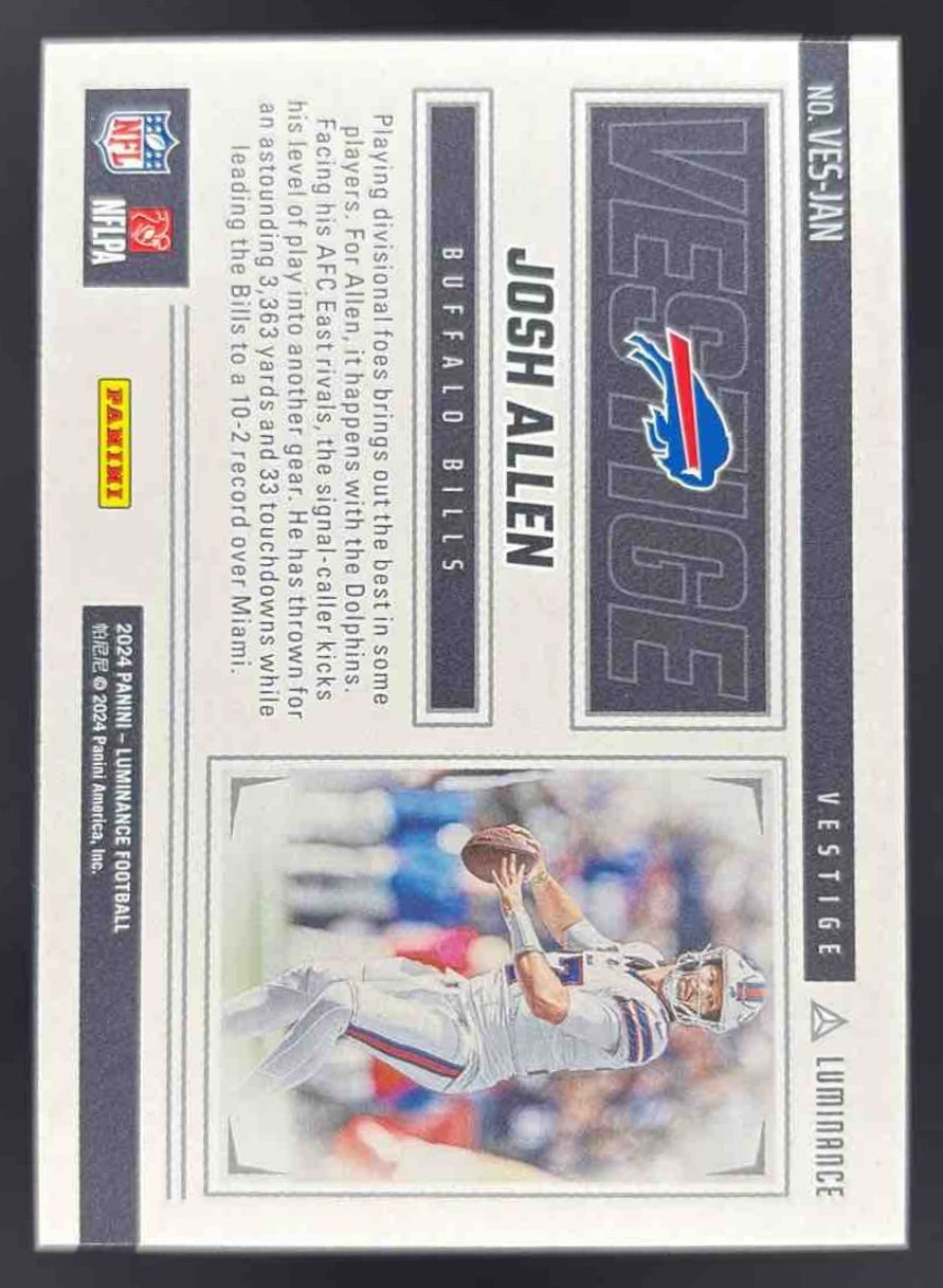 2024 Panini Luminance Vestige Orange #VES-JAN Josh Allen /100