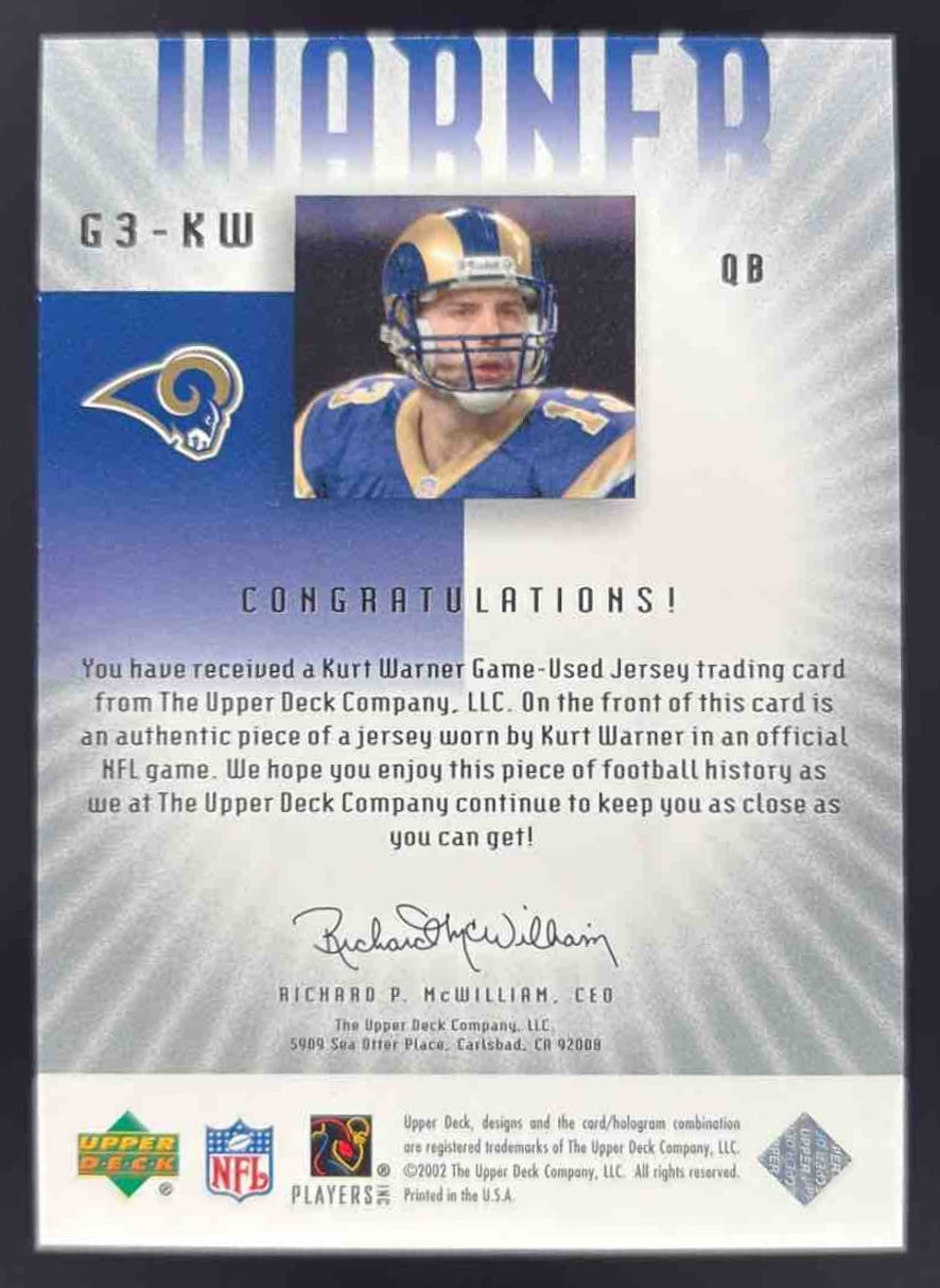 2002 Upper Deck Graded Jerseys #G3-KW Kurt Warner /50