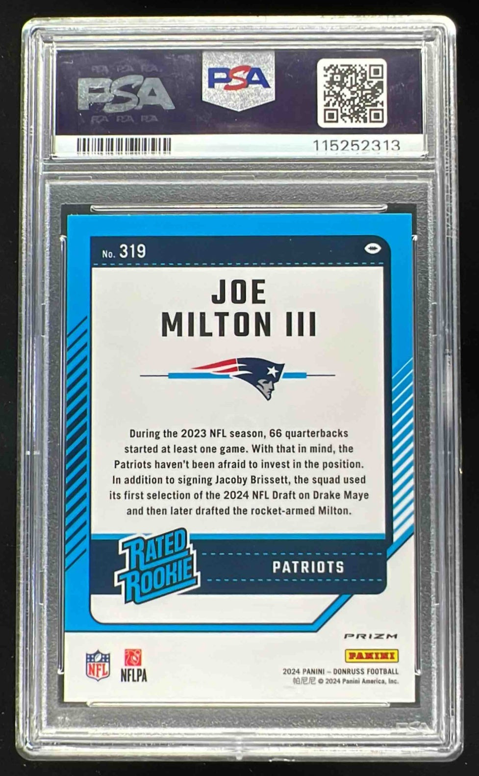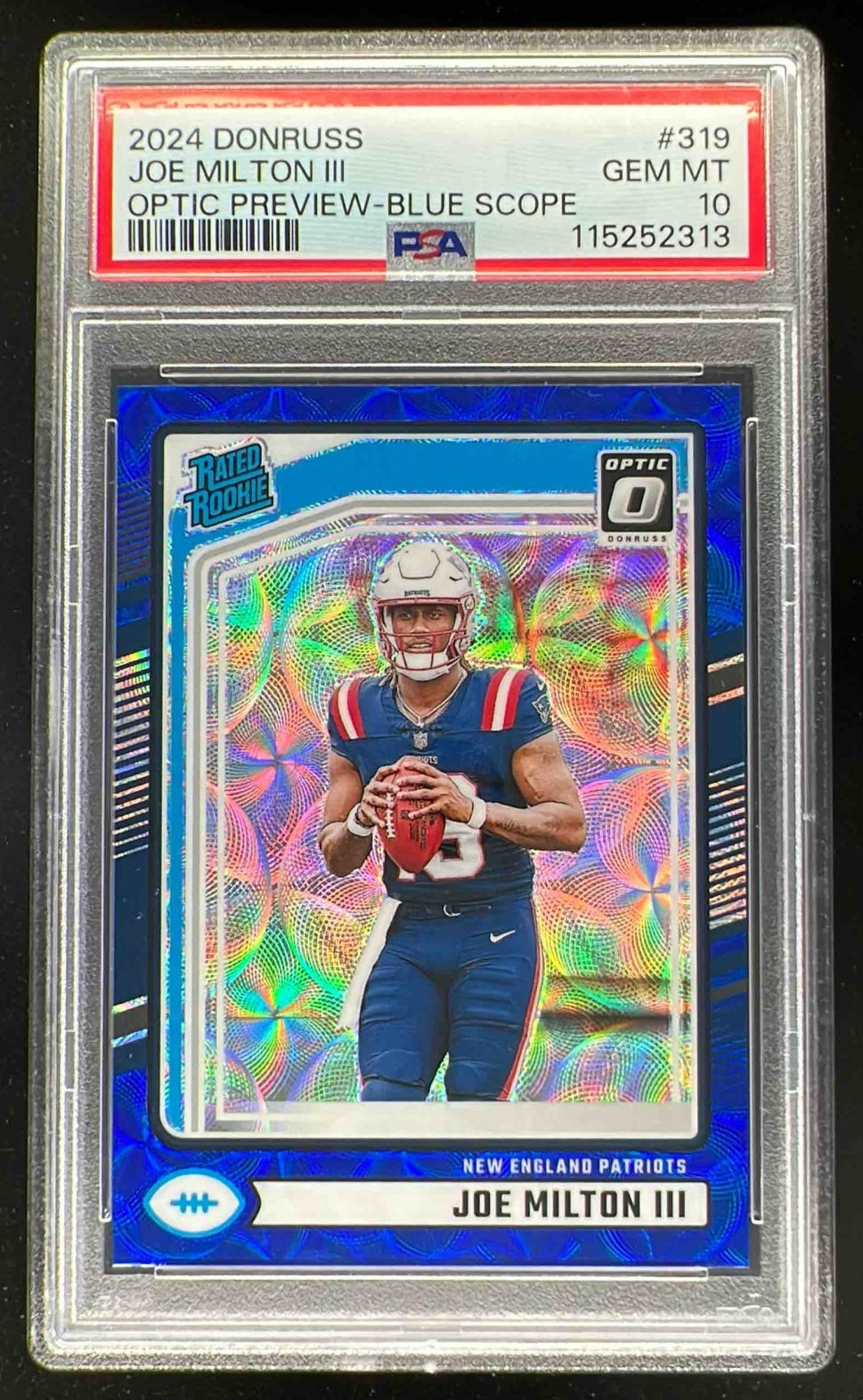 2024 Donruss Optic Rookies Preview Blue Scope Joe Milton III RC Rookie PSA 10