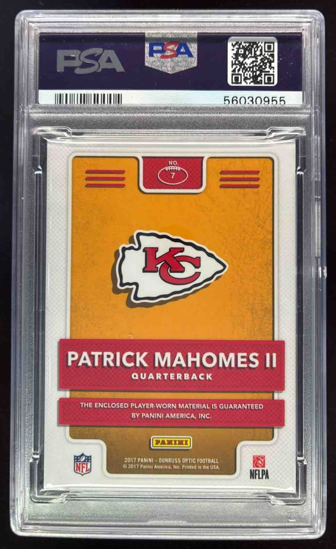 2017 Panini Donruss Optic Rookie Phenom Jerseys #7 Patrick Mahomes II RC PSA 9