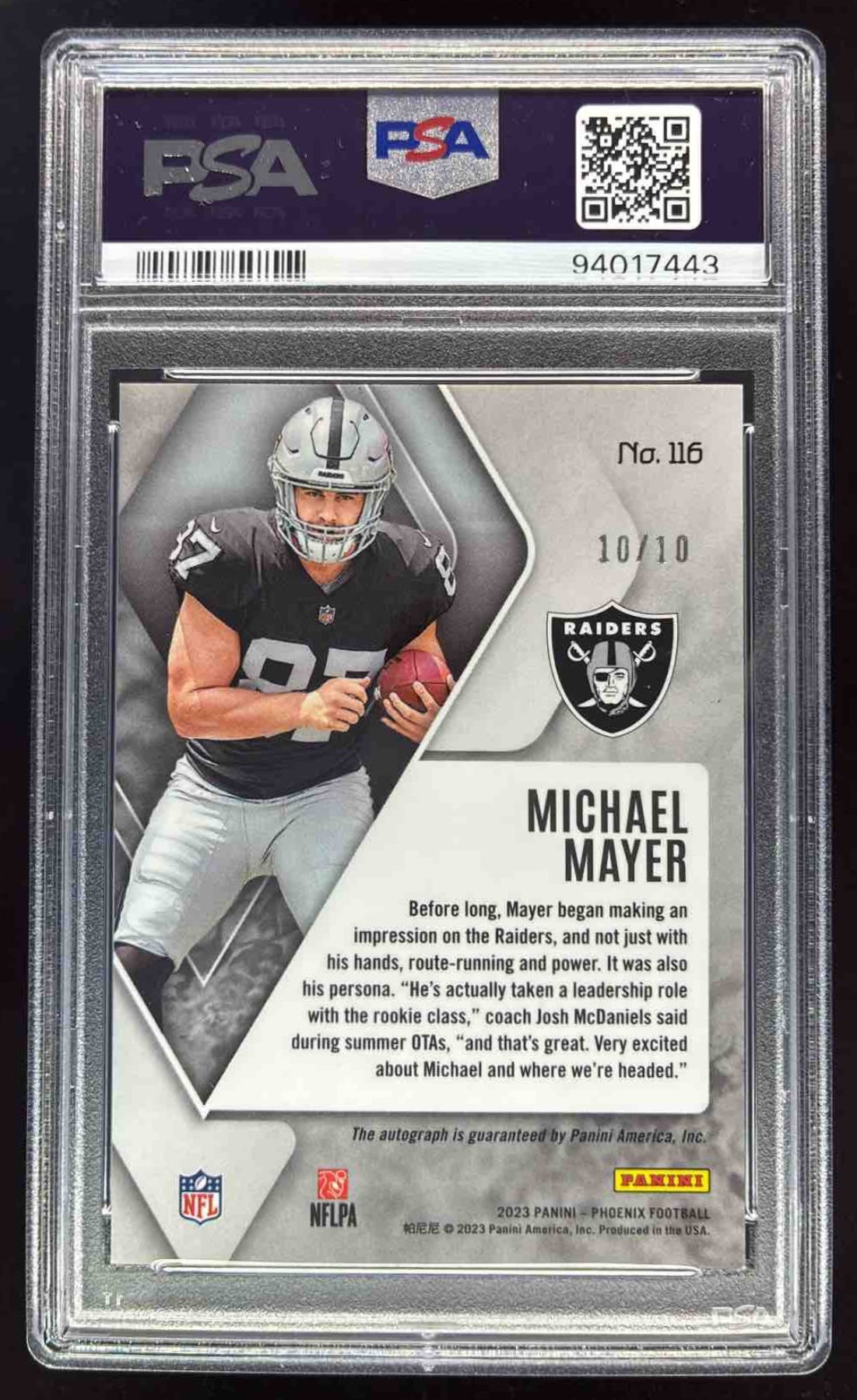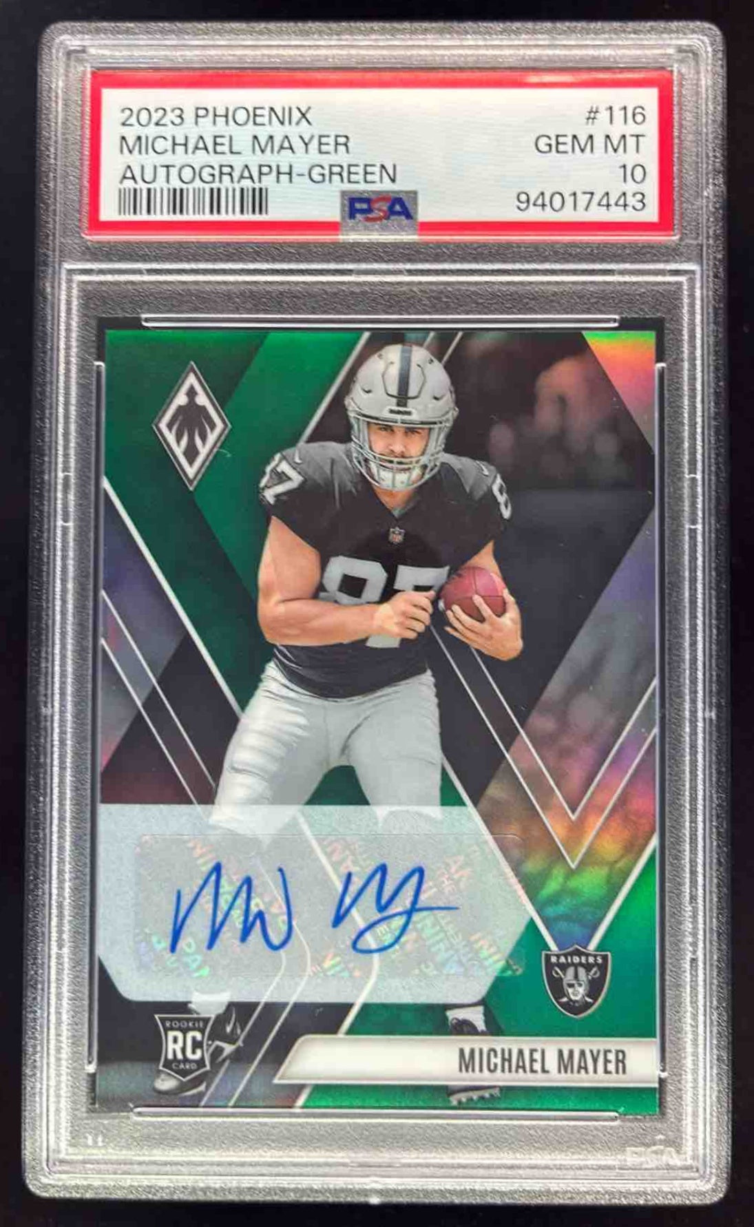 2023 Panini Phoenix Rookie Autograph Green #116 Michael Mayer RC Auto /10 PSA 10