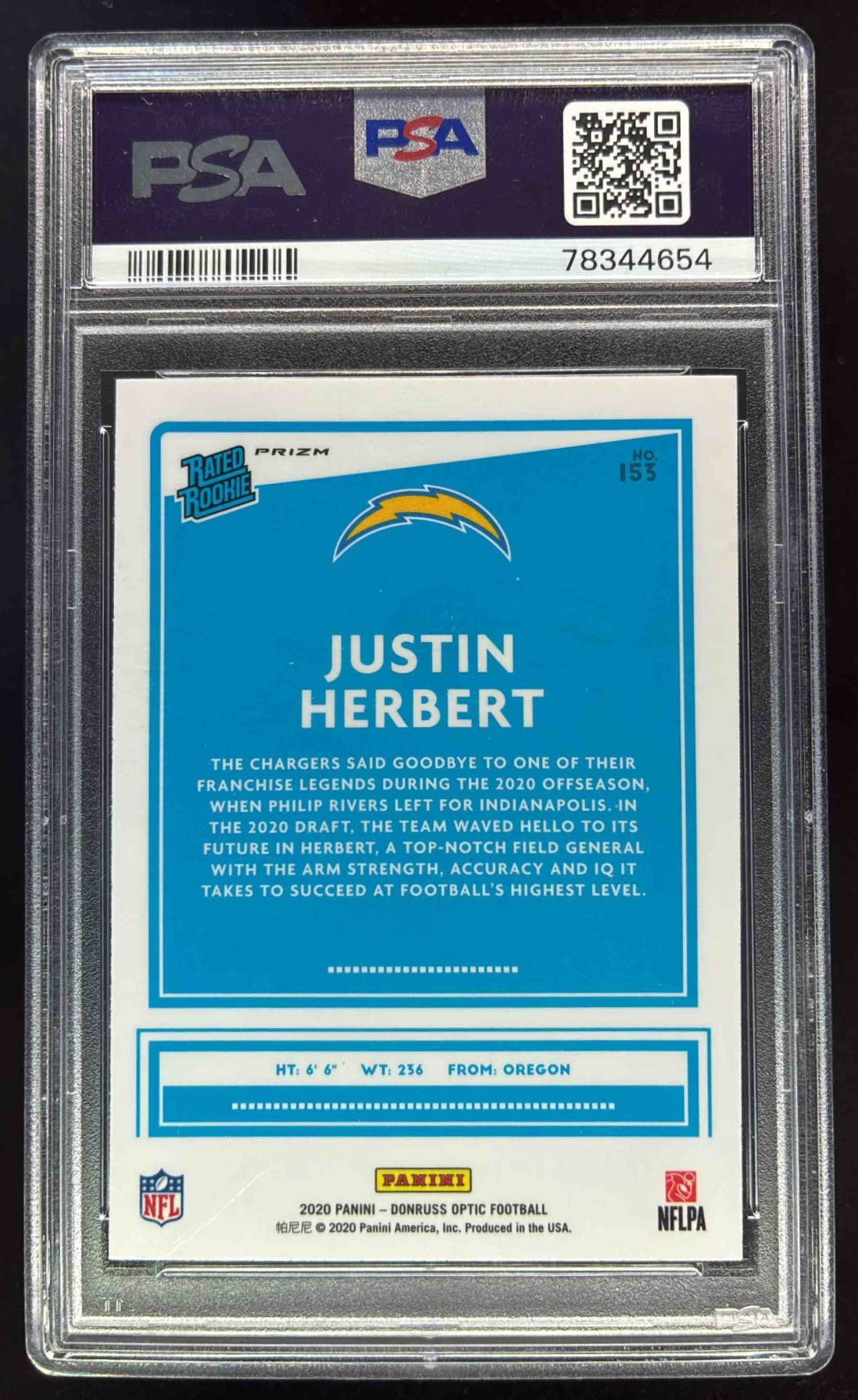 2020 Panini Donruss Optic Blue Scope Prizm #153 Justin Herbert RC PSA 10