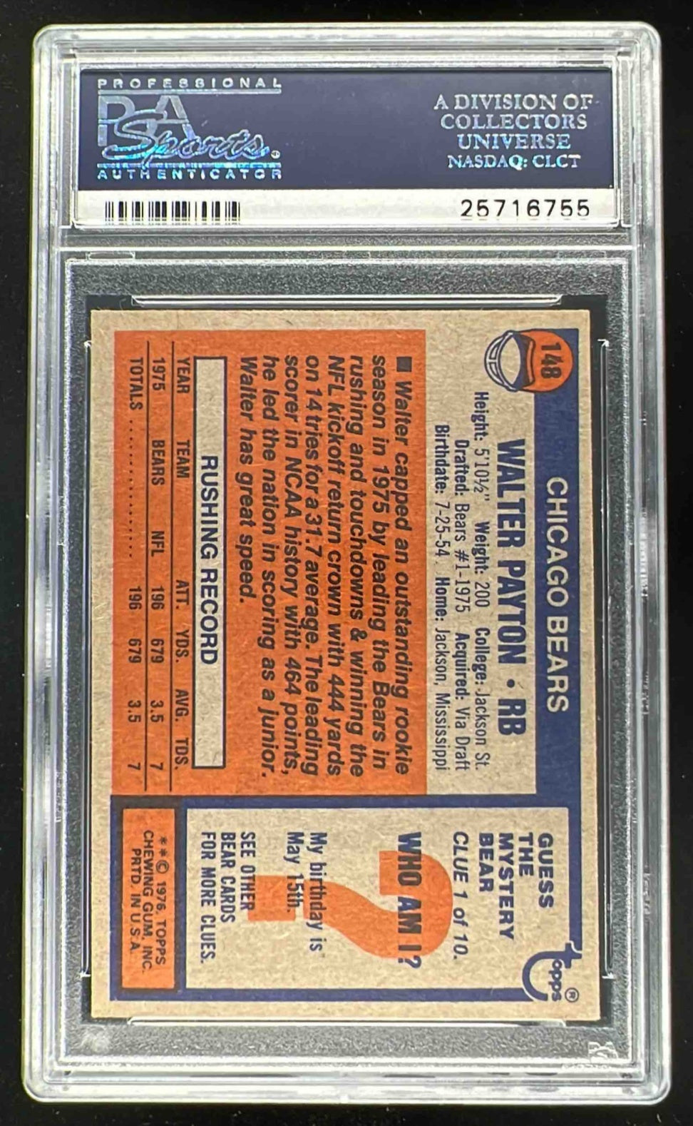 1976 Topps #148 Walter Payton RC PSA 6