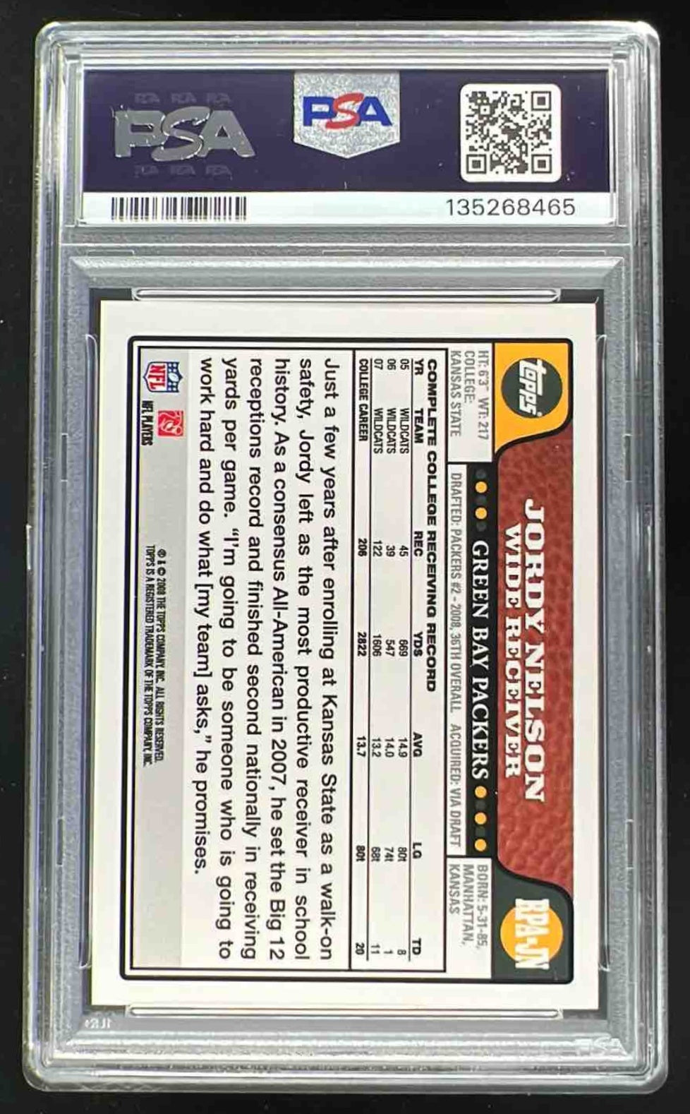 2008 Topps NFL Rookie Premiere Autographs #RPA-JN Jordy Nelson RC Auto PSA 9