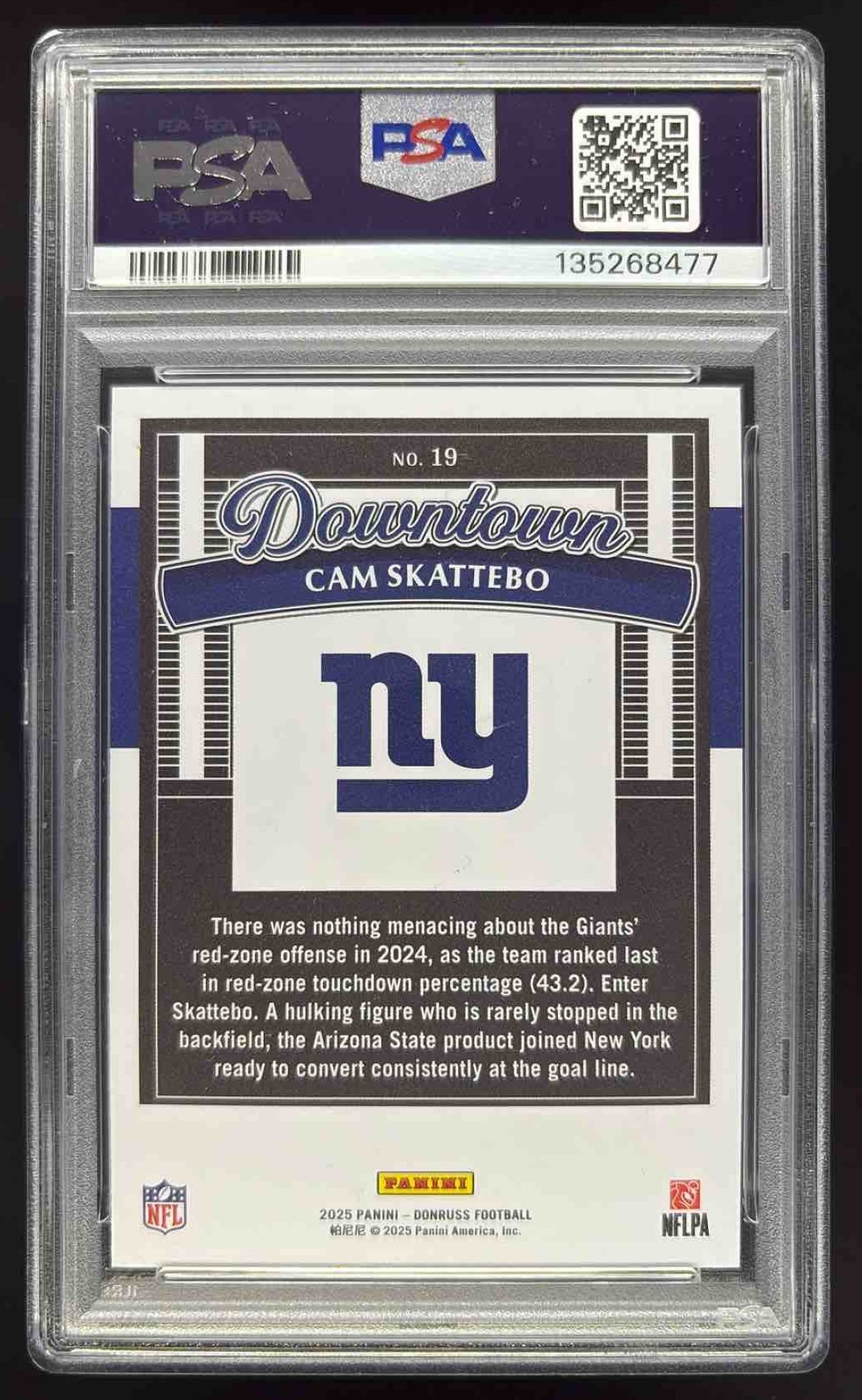 2025 Panini Donruss Downtown! Horizontal SP #19 Cam Skattebo RC PSA 10