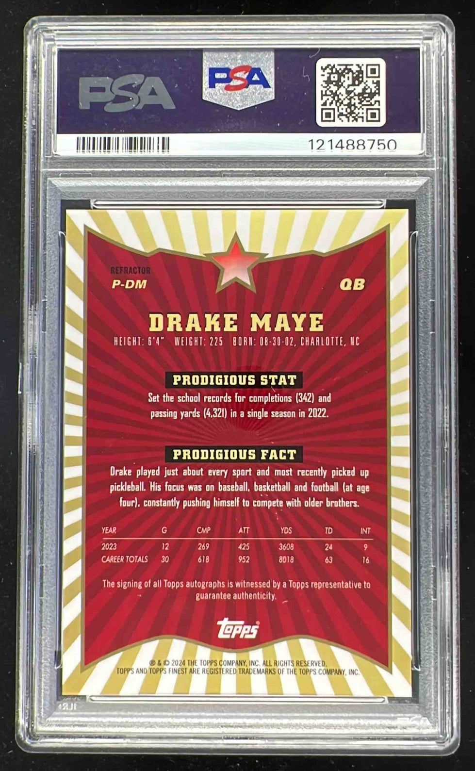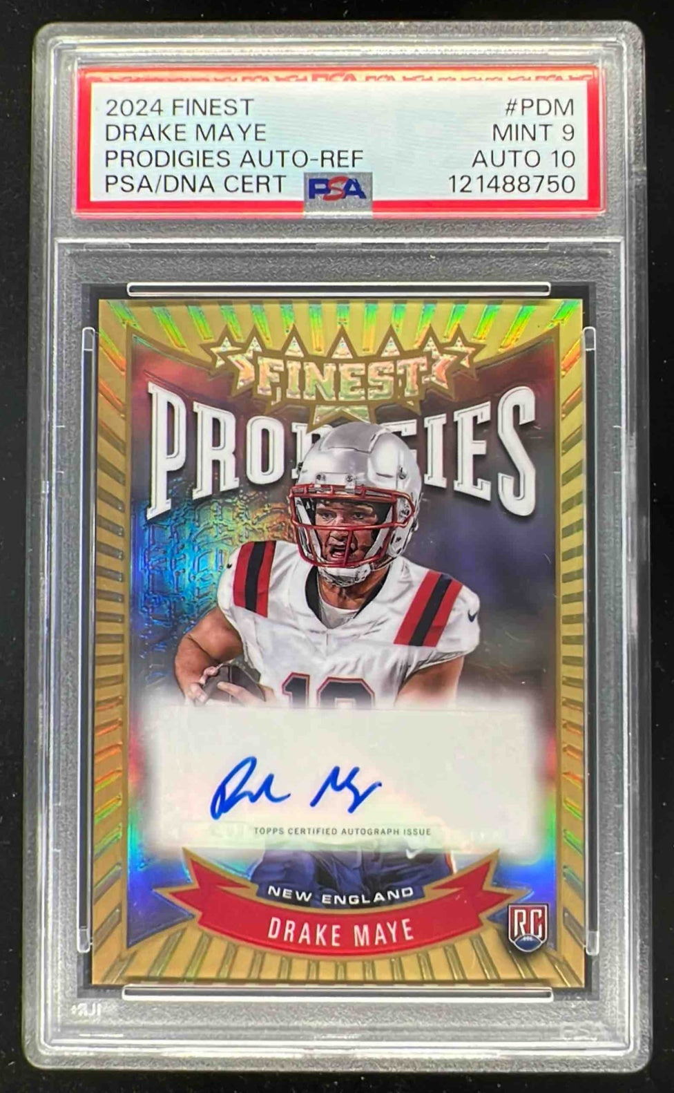 2024 Topps Finest Prodigies Autographs Refractor #P-DM Drake Maye RC Auto PSA 9