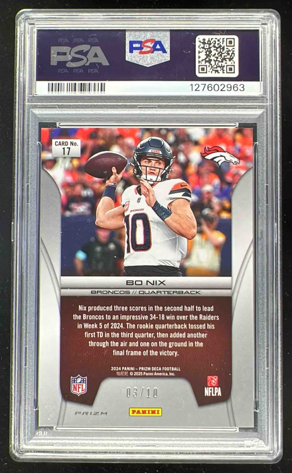 2024 Panini Prizm Deca Brilliance Gold Prizm #17 Bo Nix RC /10 PSA 9