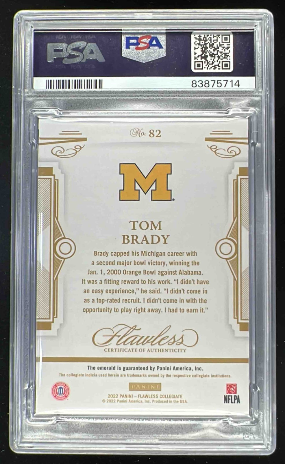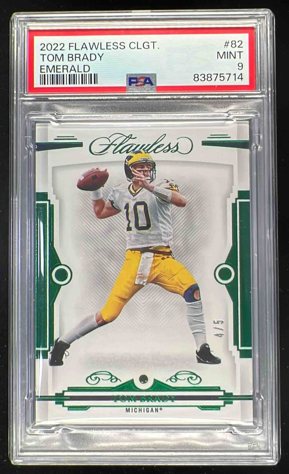 2022 Panini Flawless Collegiate Emerald #82 Tom Brady Auto /5 PSA 9