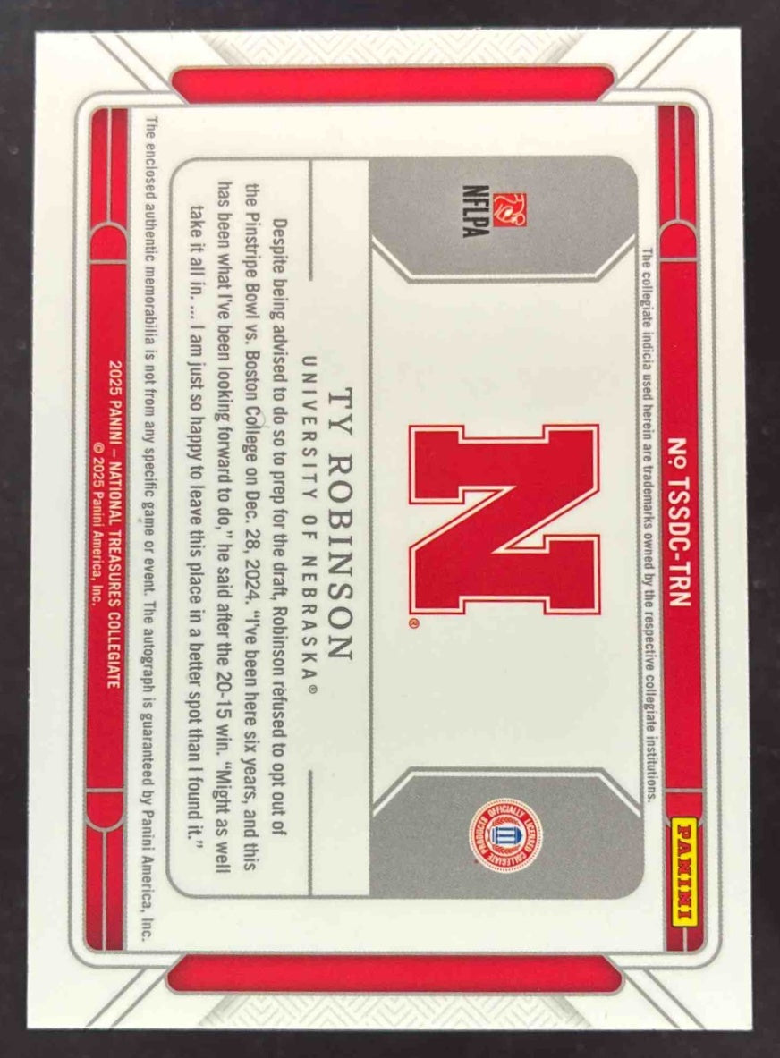 2025 National Treasures Collegiate Team Slogan Die Cut Gold Ty Robinson Auto /10