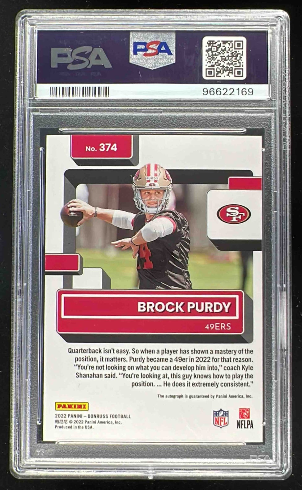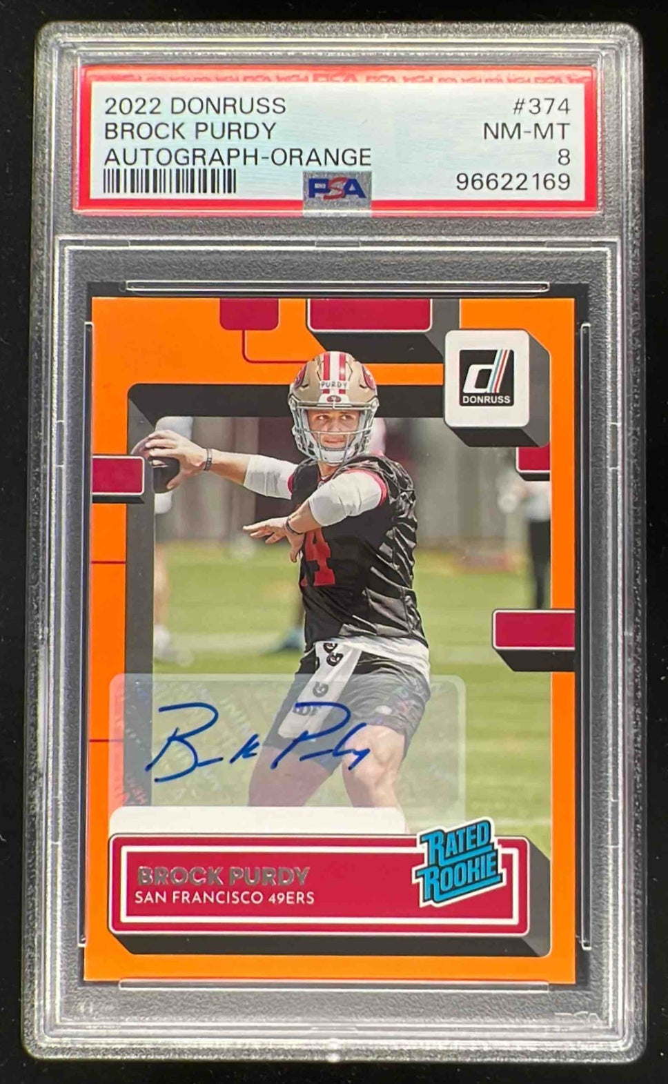 2022 Panini Donruss Rated Autographs Orange #374 Brock Purdy RC Auto PSA 8
