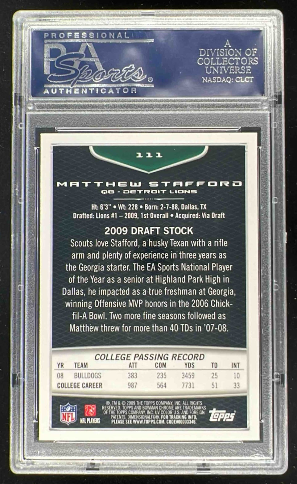 2009 Bowman Chrome #111 Matthew Stafford RC PSA 10