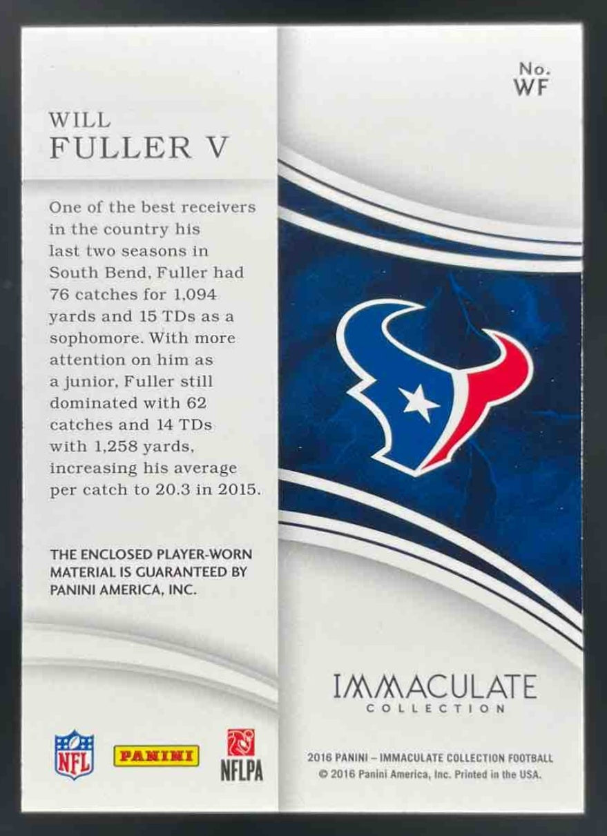 2016 Panini Immaculate Collection Rookie Helmets #WF Will Fuller V RC /10