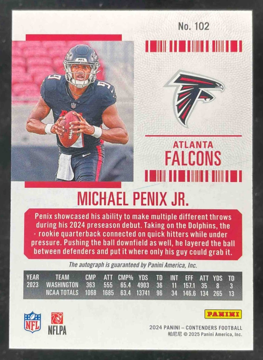 2024 Contenders Optic Rookie Ticket RPS Autograph #102 Michael Penix Jr. RC Auto
