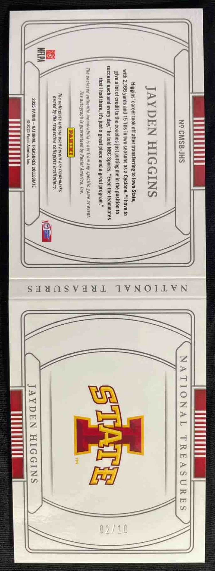 2025 National Treasures Collegiate Material Booklet Gold Jayden Higgins Auto /10