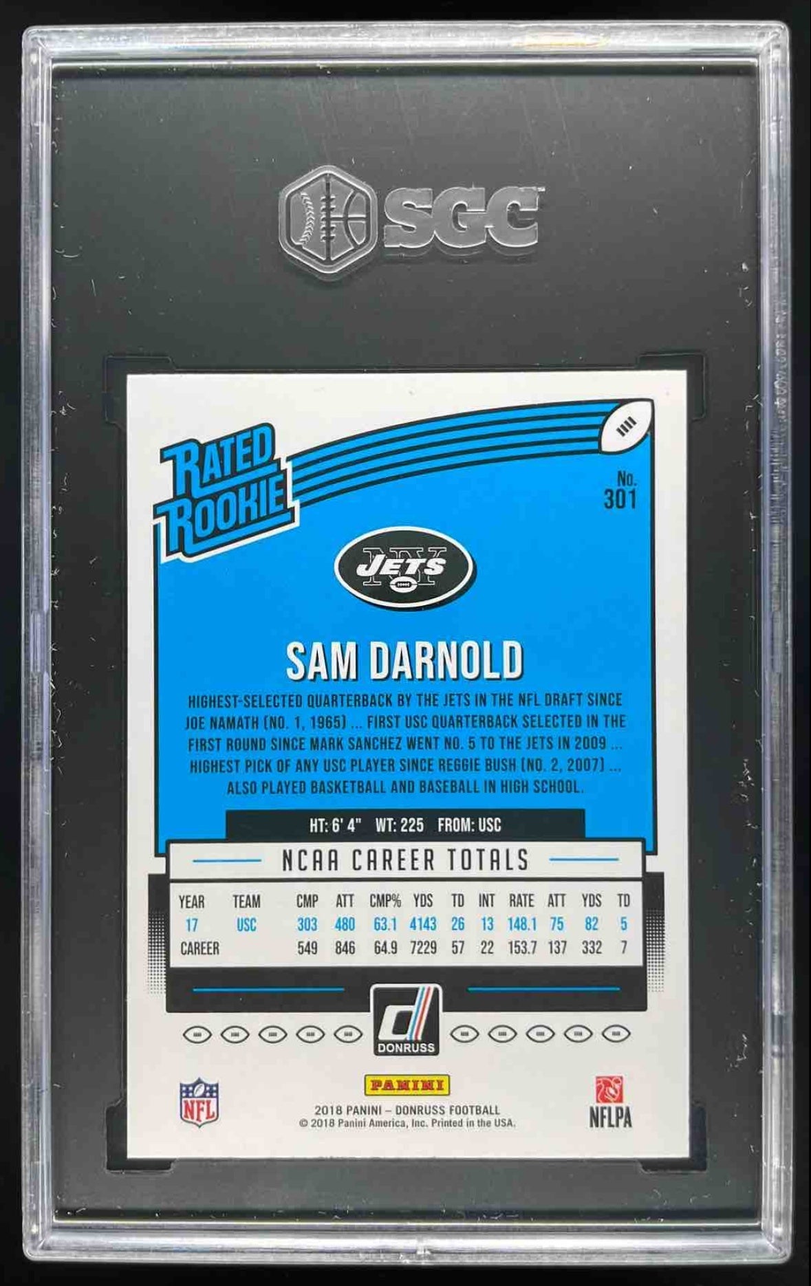 2018 Panini Donruss Press Proof Blue #301 Sam Darnold RC SGC 9