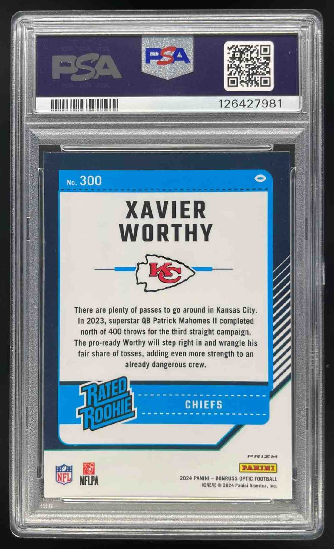 2024 Panini Donruss Optic Purple Shock #300 Xavier Worthy Rated Rookie PSA 10