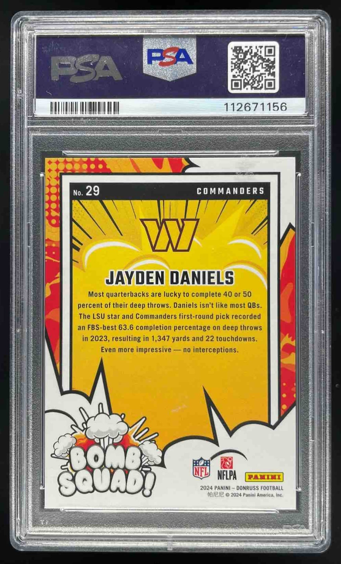 2024 Panini Donruss Bomb Squad #29 Jayden Daniels RC PSA 9
