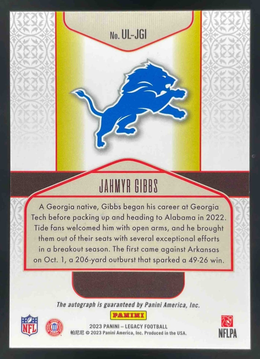 2023 Panini Legacy Under the Lights Silver #ULJGI Jahmyr Gibbs RC Autograph Auto